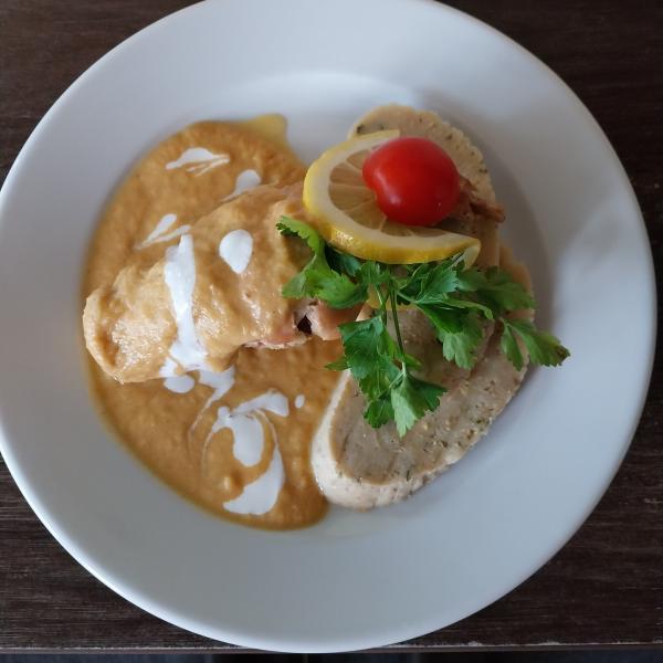 gyros hús csirkecombfiléből, jégsaláta, paradicsom, kígyóuborka, lilahagyma választható körettel, választható öntettel